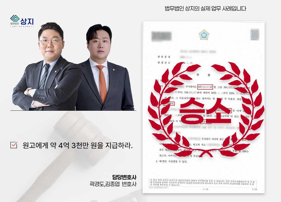 유사한 사건에서 상지가 이끌어낸 업무사례를 확인해 보세요.