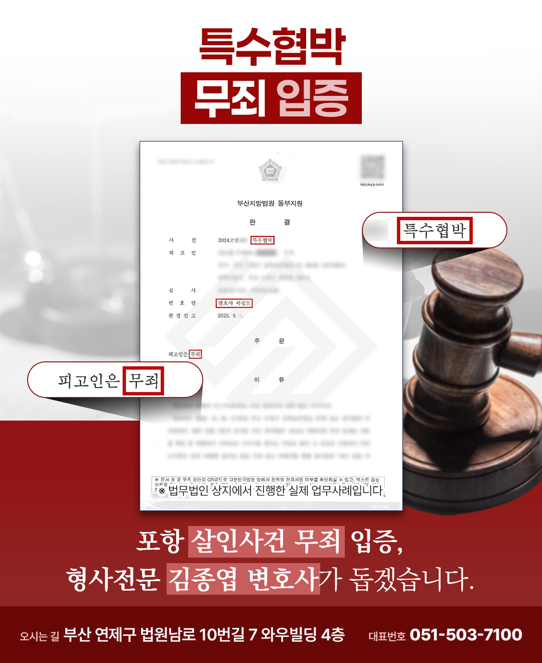 결국 의뢰인은 형사소송법 제325조 후단(범죄의 증명이 없는 때에 해당)에 따라 무죄가 선고되었습니다.